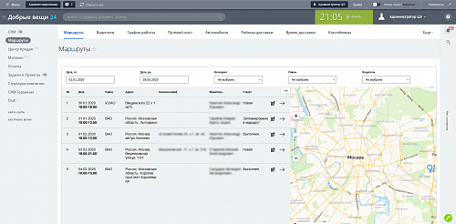 • Отчетность по забору вещей и по выполненным маршрутам.
